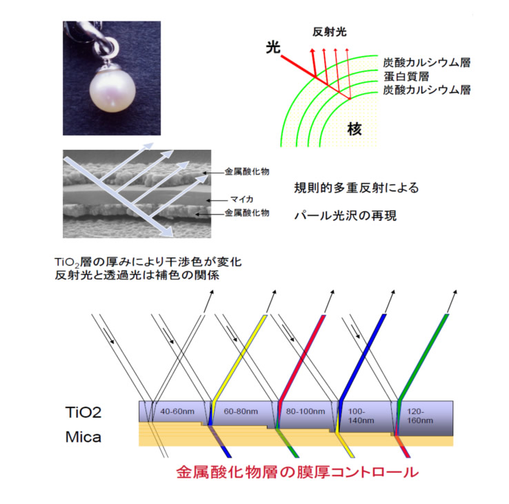 パール光沢を人工的に再現させる為の顔料自然界で見られる独特の深みのある、柔らかい光沢。