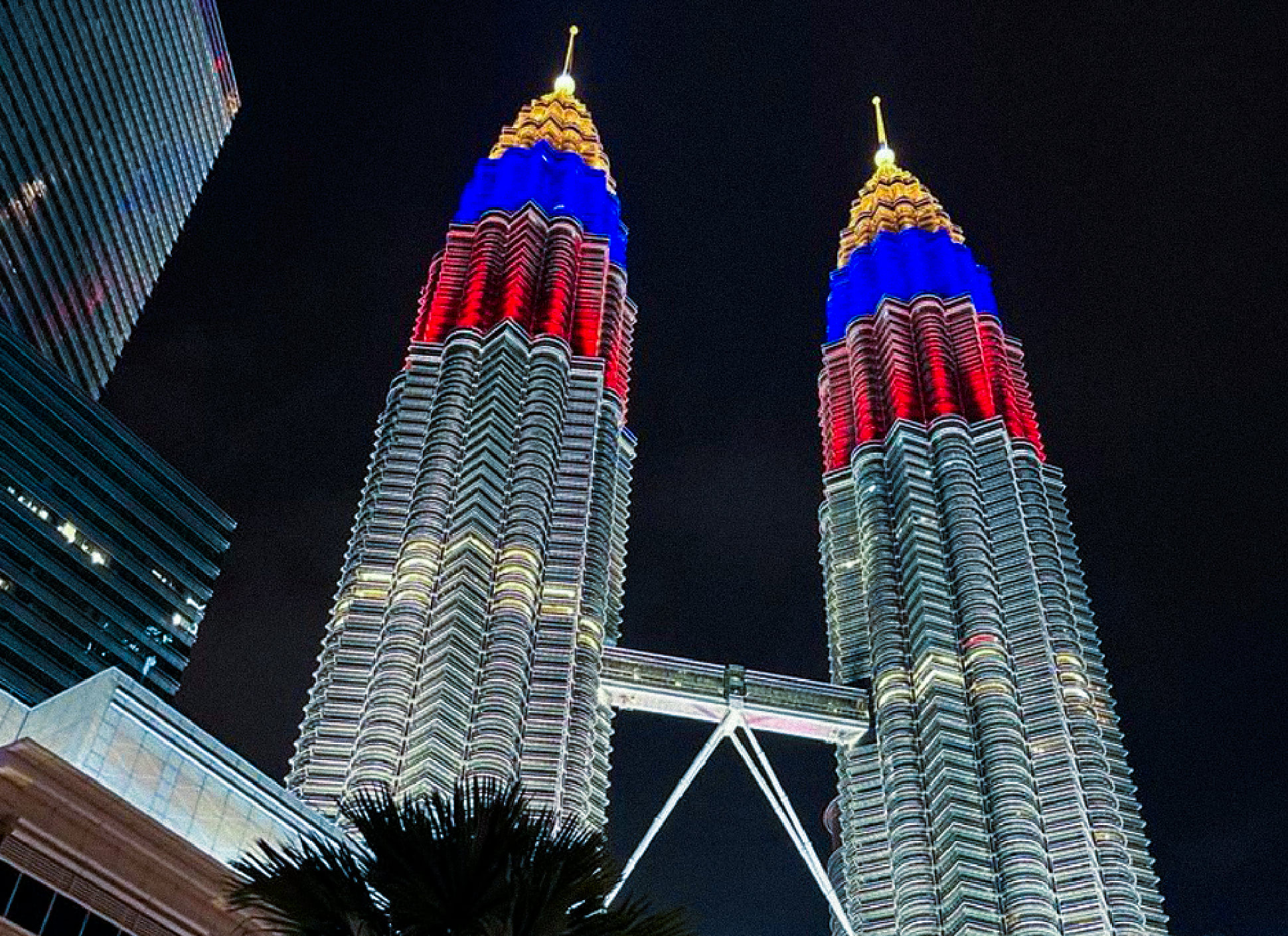 クアラルンプールのシンボルである、超高層ビル「ペトロナスツインタワー」の写真です。