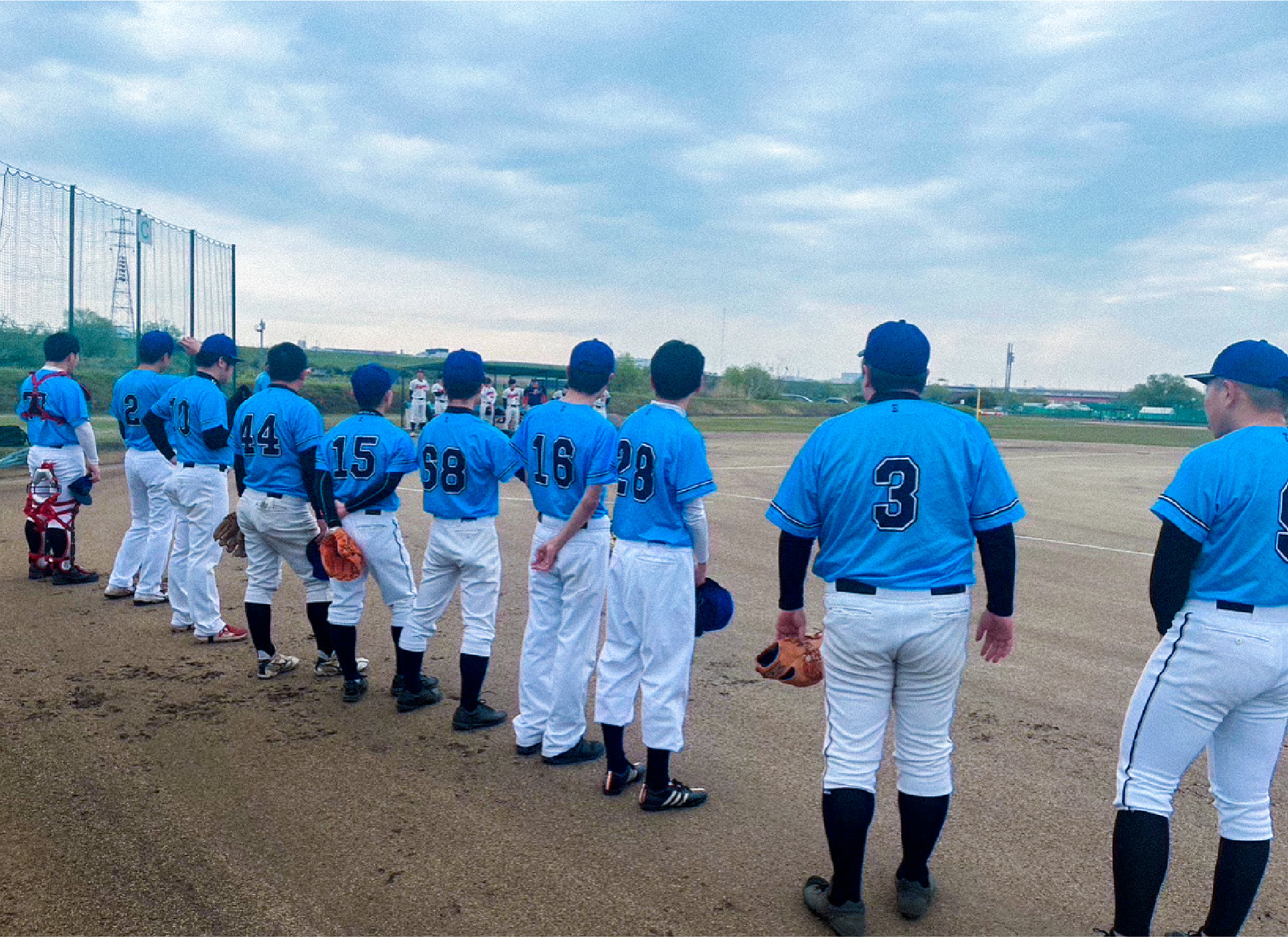 野球部の試合中の風景です。仲間と共に勝利を目指し、気合注入!