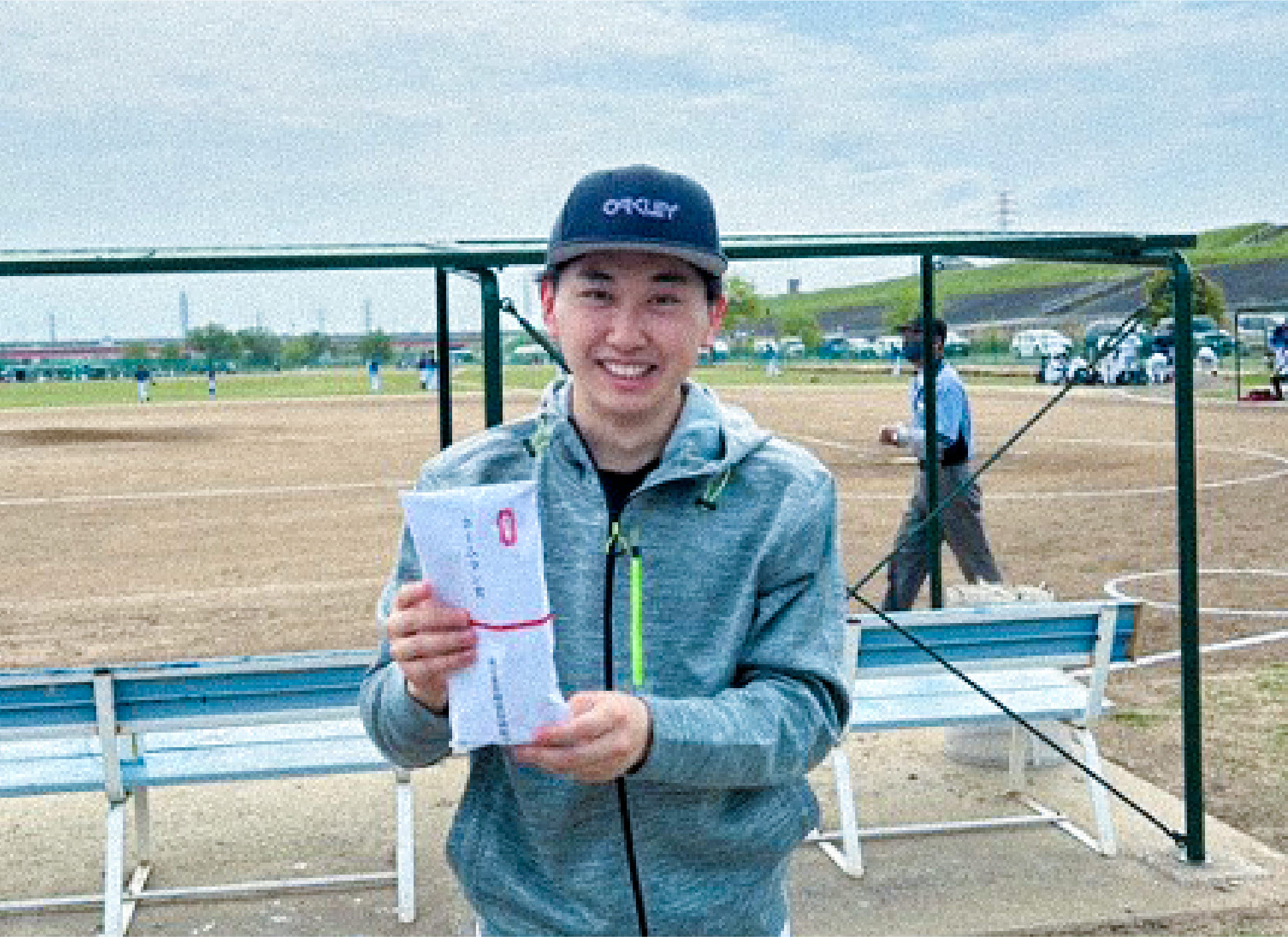 野球部の試合でホームランを打った社員が、ホームラン賞を受賞しました!