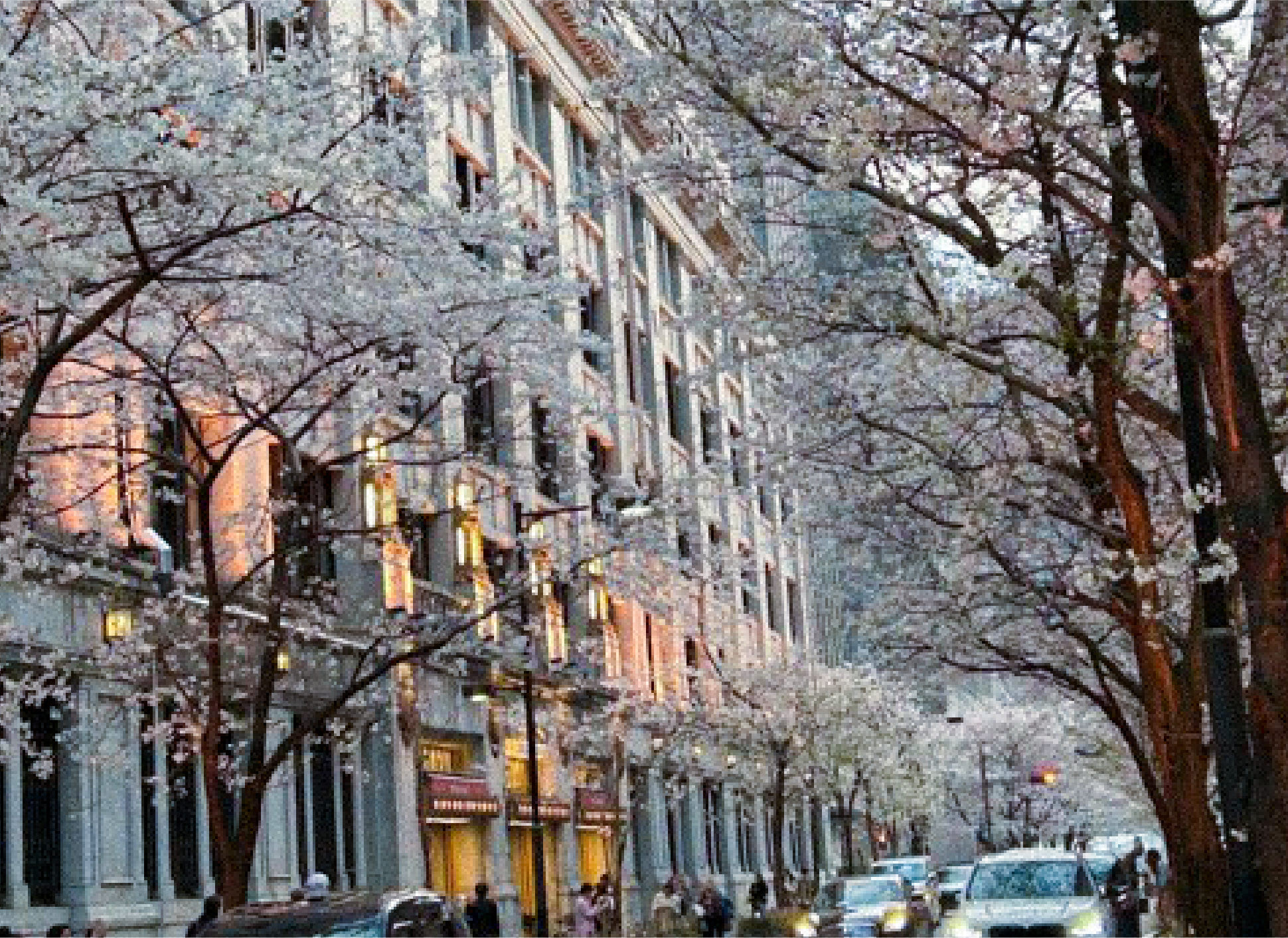 江戸桜通りの桜並木です。満開の桜は見応えがあり、仕事のモチベーションも上がります。